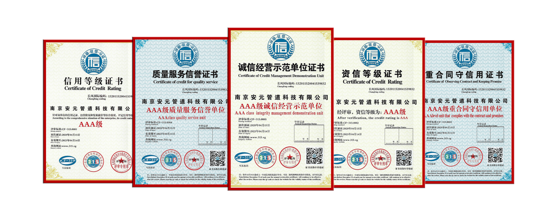 我公司建立了从施工准备、施工质量控制、施工质量的可追溯性、工程质量交验及产品售后服务等一整套科学、严谨的管理控制体系。为保证管道的接口焊接质量,公司技术人员研制开发出了有自主知识产权的全自动电熔焊机,并摸索出了一整套优于行业水平的焊接工艺,从而确保工程交付合格率达到100%。